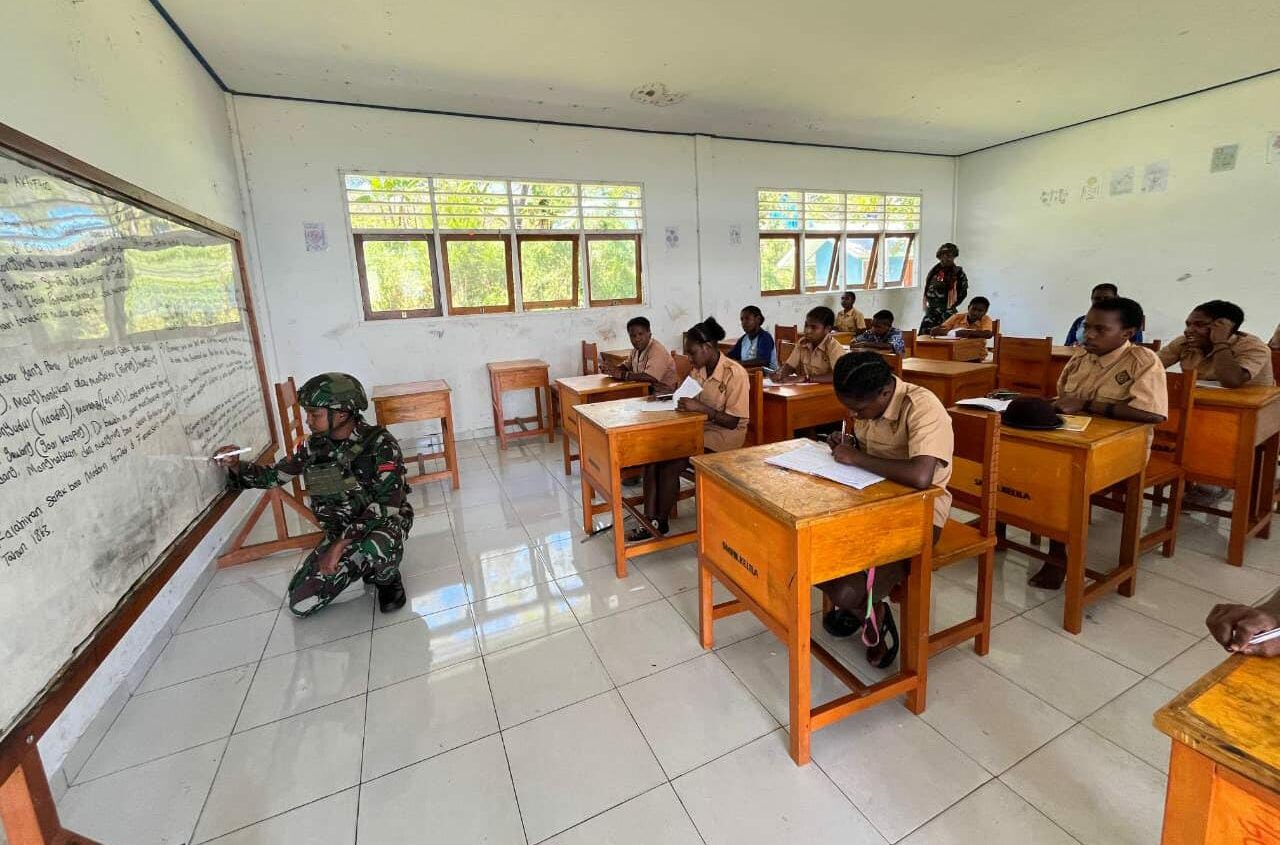 SuaraINetizen.Com - Kampung Beringin, Pegunungan Bintang, Pos Selal Satgas Pamtas RI–PNG Yonif 751/Vira Jaya Sakti (VJS) melaksanakan edukasi kebersihan lingkungan...