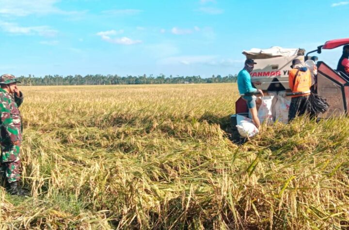 SuaraINetizen.Com - Aceh Utara, Babinsa Koramil 29/Langkahan, Sertu Syamsuddin, melaksanakan pendampingan panen padi bersama petani di Desa Tanjung Dalam, Kecamatan...