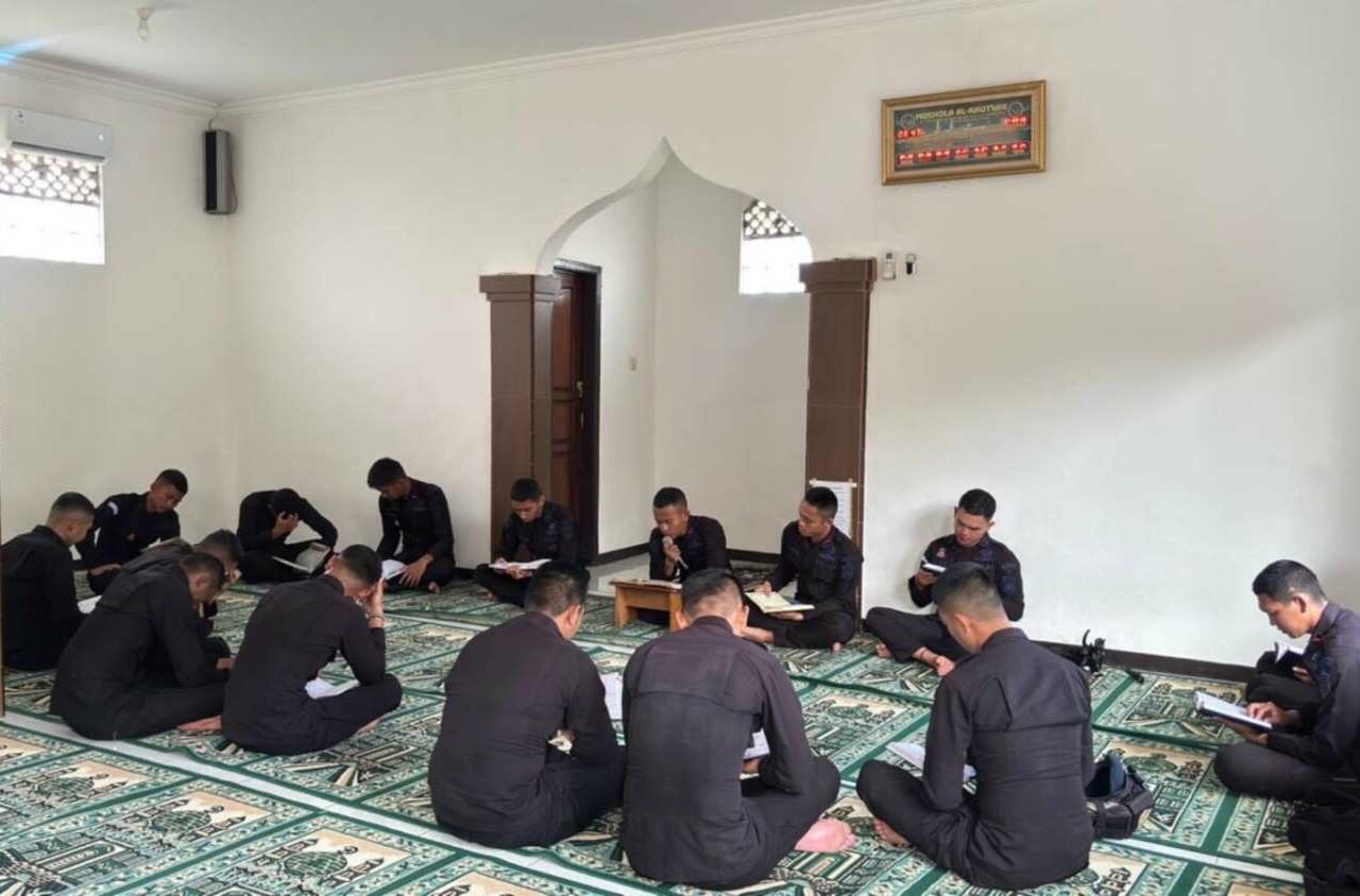 Jakarta - Detasemen Gegana Satbrimob Polda Metro Jaya menghidupkan Ramadan melalui tausiah dan tadarus Al-Qur’an di Musholla Al Hikmah, Senin...