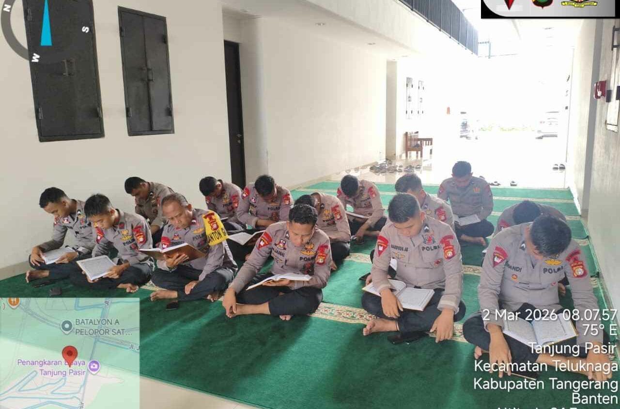 Tangerang - Satbrimob Polda Metro Jaya menggelar tadarus Al-Qur’an bersama personel di Mushola Al Kautsar pada Minggu pagi, 01/03/2026. Kegiatan...
