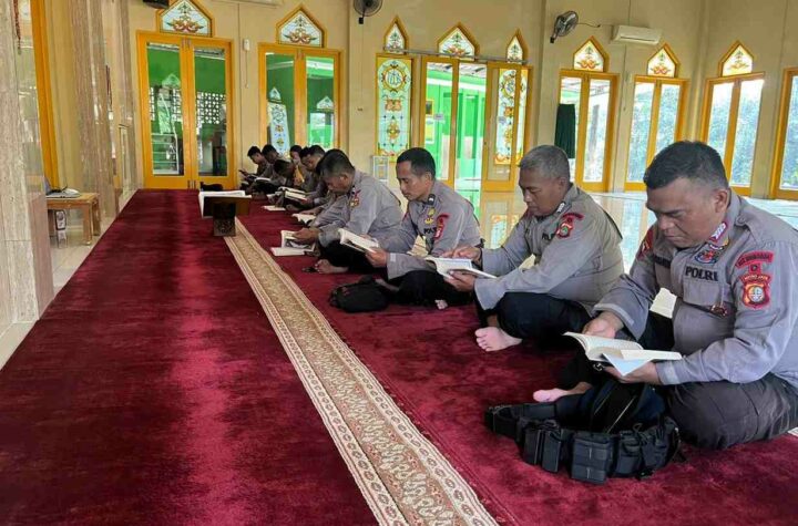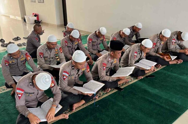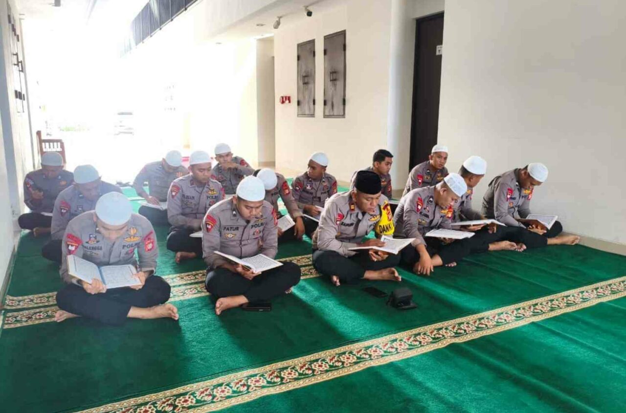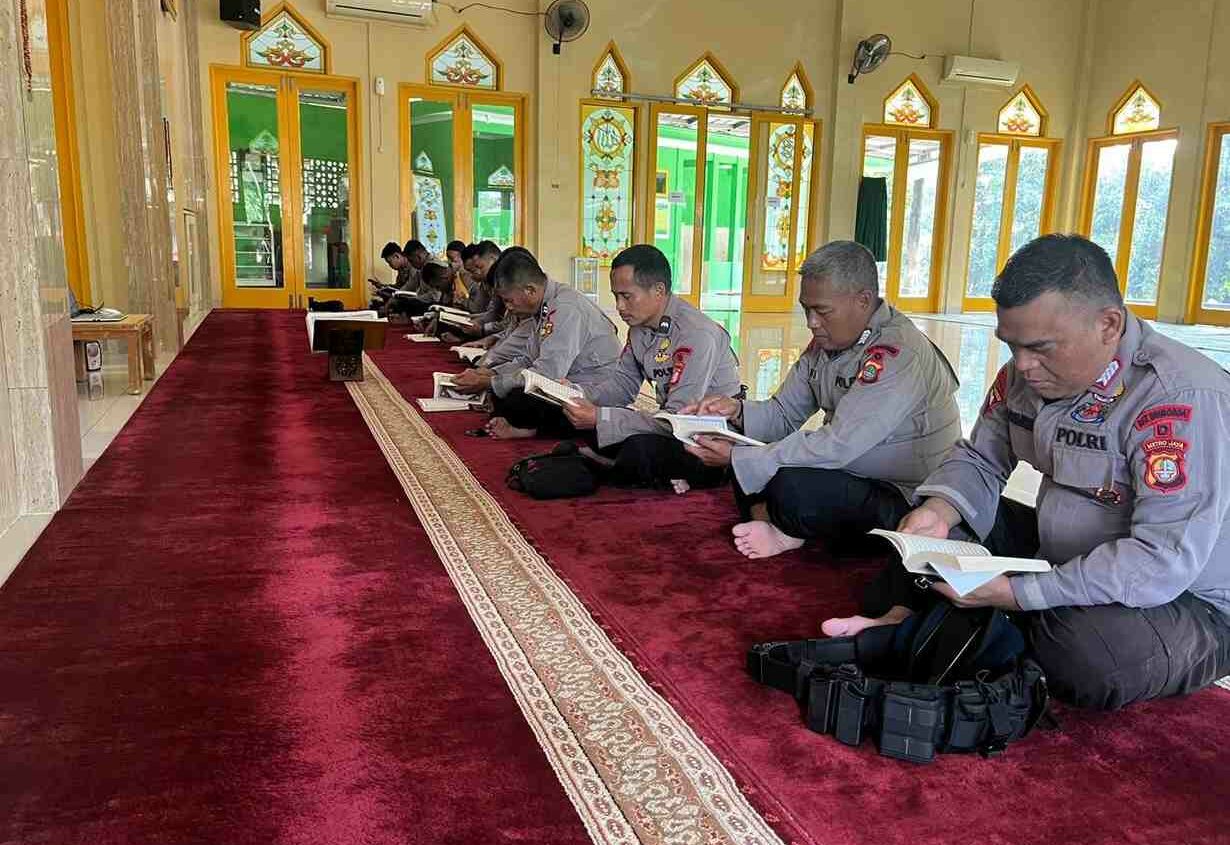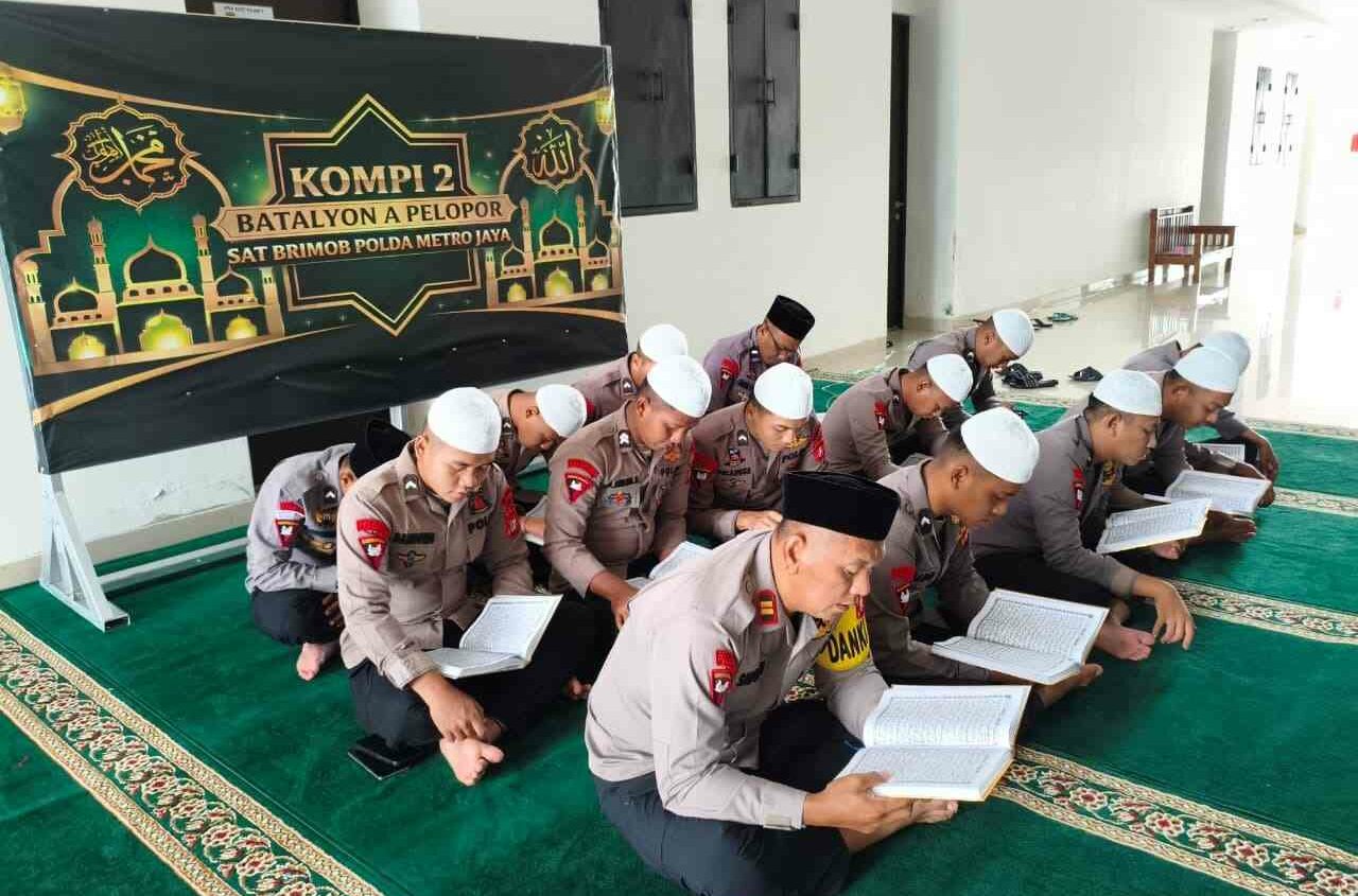 Jakarta - Personel Kompi 2 Batalyon A Pelopor Satbrimob Polda Metro Jaya mengawali aktivitas Ramadan dengan tadarus Al-Qur’an, Senin pagi,...