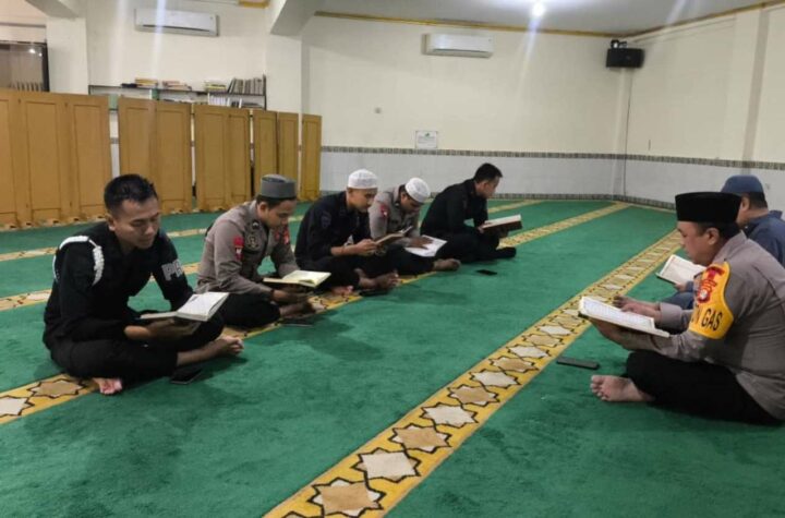 Kab. Bekasi - Personel Batalyon D Pelopor Satbrimob Polda Metro Jaya mengisi Ramadan dengan tadarus Al-Qur’an di Masjid Al-Amin Mako...