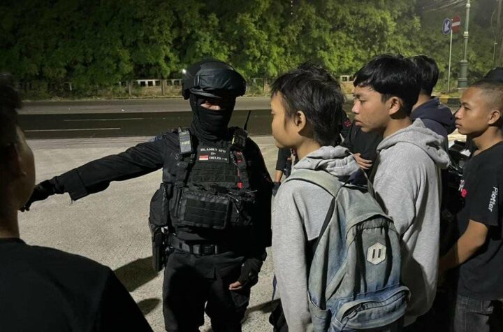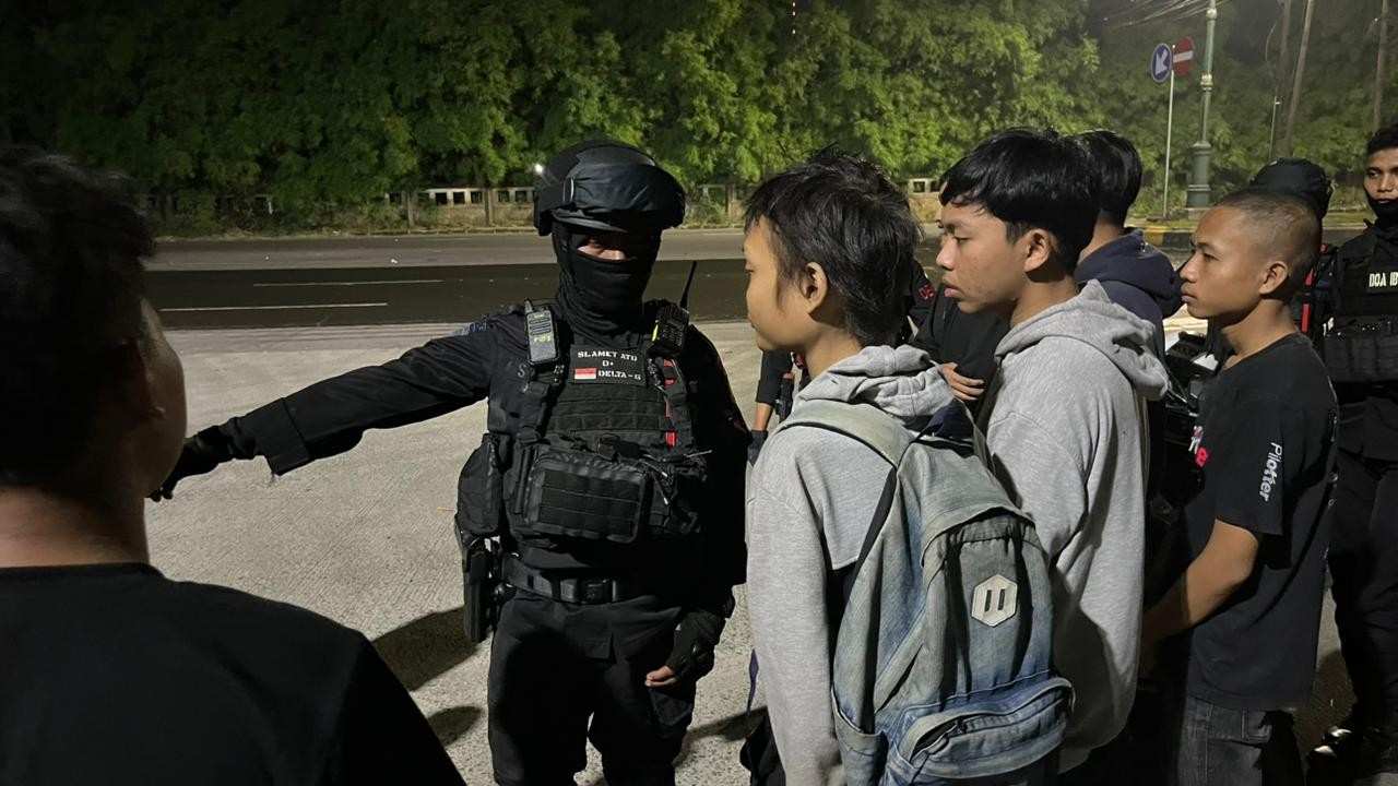 Jakarta, 6 April 2026 - Batalyon D Pelopor Brimob Polda Metro Jaya menekan potensi tawuran melalui patroli dini hari di...