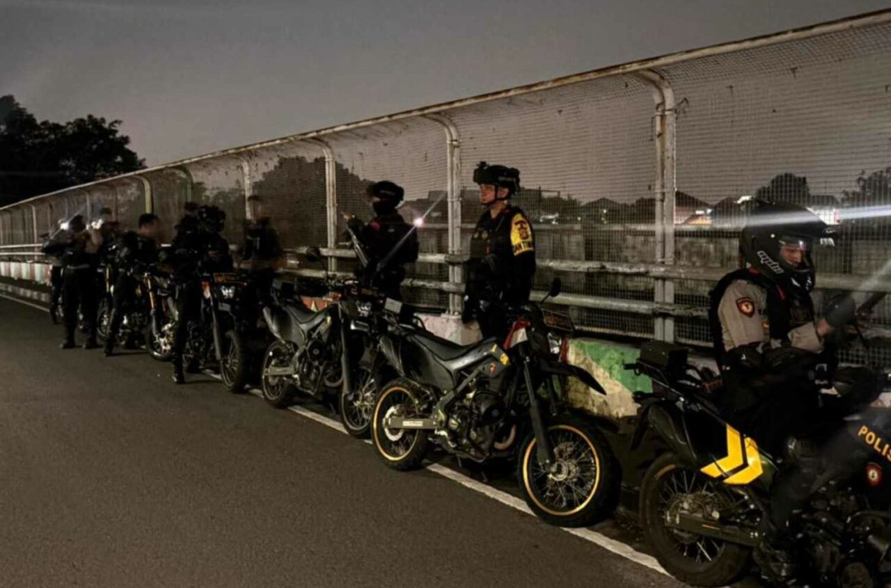 Kabupaten Bekasi, 7 April 2026 - Batalyon D Pelopor Brimob Polda Metro Jaya meningkatkan patroli dini hari guna meredam potensi...