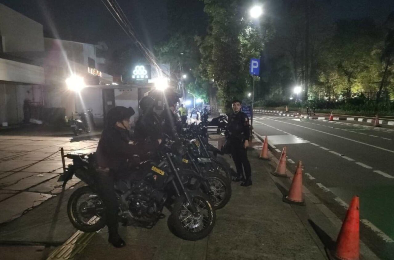 Jakarta, 8 April 2026 - Batalyon A Pelopor Brimob Polda Metro Jaya mengintensifkan patroli dini hari di Jakarta Pusat dan...
