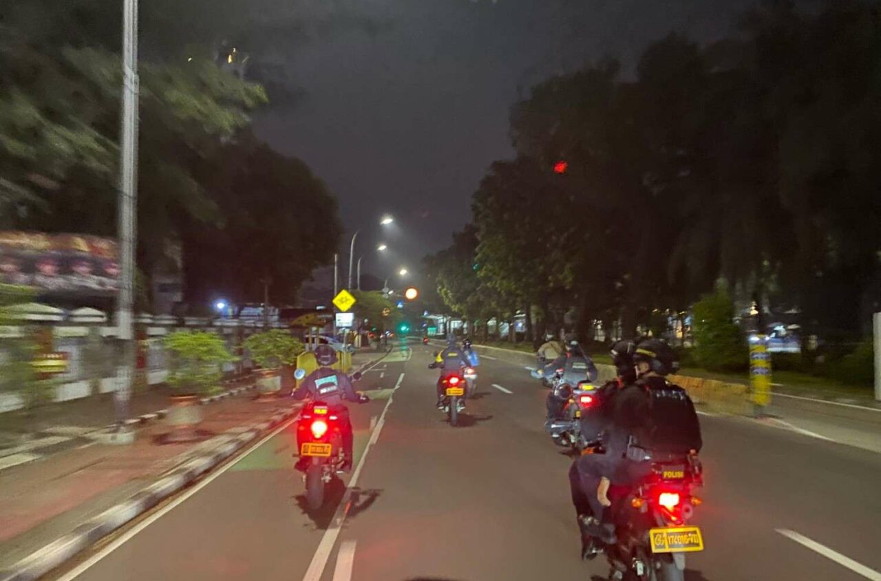 Jakarta, 18 April 2026 - Batalyon A Pelopor Brimob Polda Metro Jaya mengintensifkan patroli dini hari di Jakarta Pusat dan...