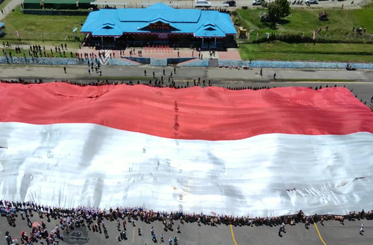 Ket : Bendera Merah Putih Raksasa Berkibar di Papua Pegunungan