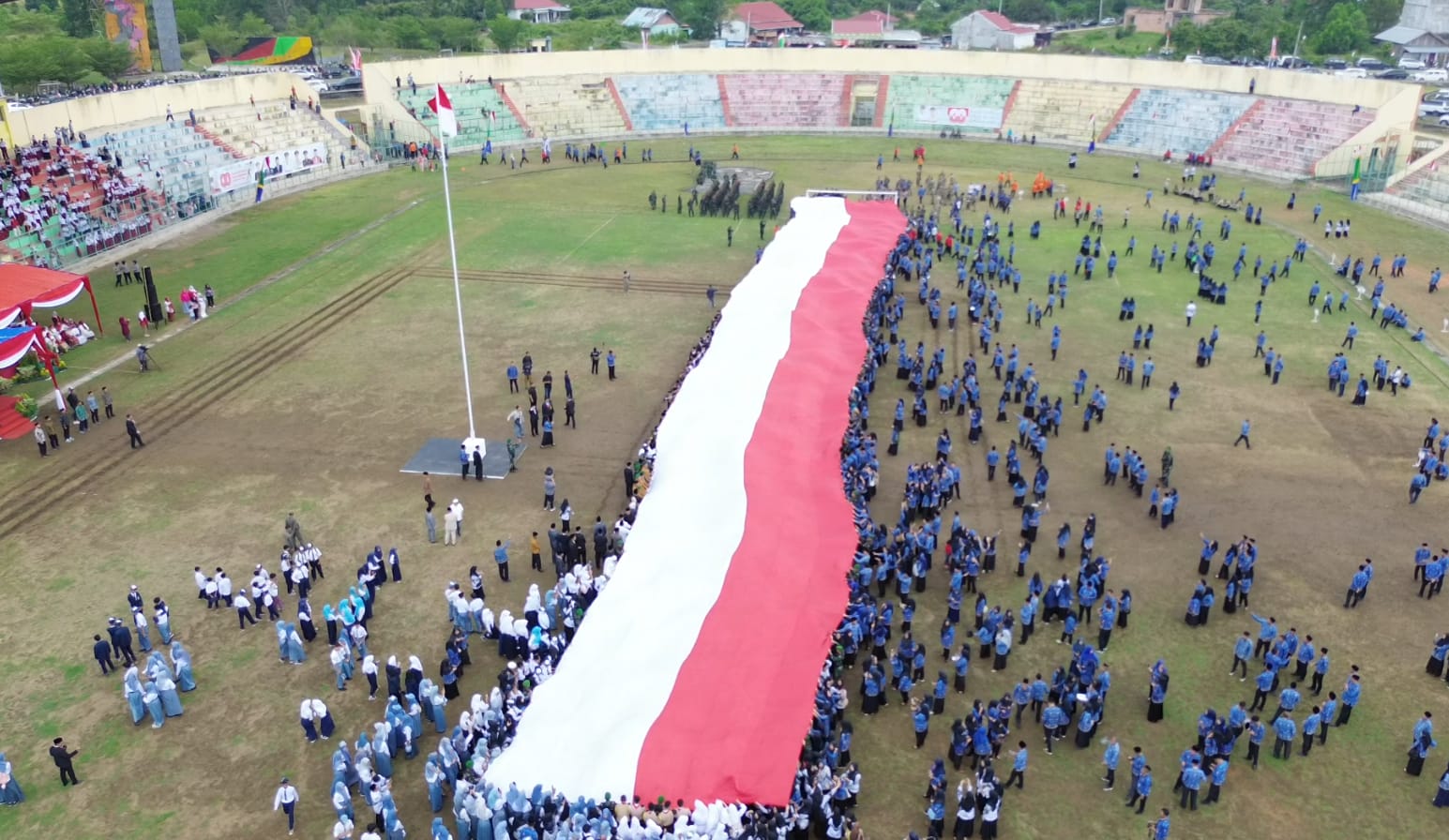 “Bendera Merah Putih raksasa yang dibentangkan oleh semua elemen menjadi simbol persatuan, kebersamaan, dan semangat juang dalam mengisi kemerdekaan, mewujudkan kesejahteraan rakyat demi Indonesia yang lebih maju,” pungkas Orang nomer satu di Kodim 0416/Bute.