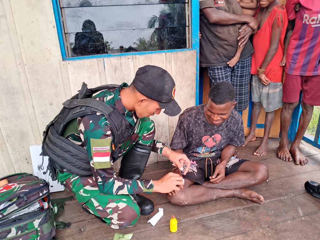 SuaraINetizen.Com – Asmat, Pos Fayit Satgas Yonif 123/Rajawali melaksanakan pelayanan kesehatan langsung ke rumah-rumah warga (door to door) di kampung Basim, Distrik Fayit, Kabupaten Asmat, (30/8/2025). Kegiatan ini dilakukan untuk menjangkau masyarakat yang kesulitan datang ke fasilitas kesehatan karena jarak dan kondisi medan.