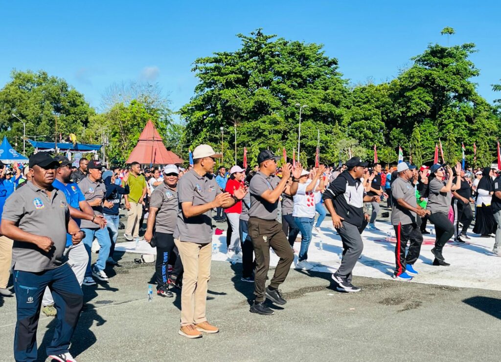 SuaraINetizen.Com – Sentani, Kabupaten Jayapura, Dalam rangka memperingati Hari Olahraga Nasional (Haornas), Danyonif 751/Vira Jaya Sakti (VJS) Letkol Inf Erwan Harliantoro, S.H., M.Han bersama jajaran prajurit Yonif 751/VJS turut serta dalam kegiatan olahraga bersama yang dilaksanakan bersama Pemerintah Daerah Kabupaten Jayapura pada Selasa (9/9/2025).
