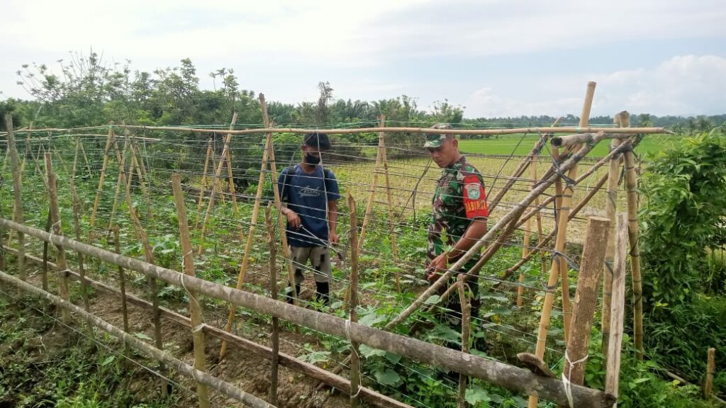 SuaraINetizen.Com – Aceh Utara, Dalam rangka mendukung program ketahanan pangan, Babinsa Koramil 28/Pirak Timu, Sertu M. Khaedir, turun langsung membantu petani merawat tanaman timun milik Khairuddin (36) di Desa Ara Ton Ton Moncrang, Kecamatan Pirak Timu, Kabupaten Aceh Utara, Minggu (14/9/2025).