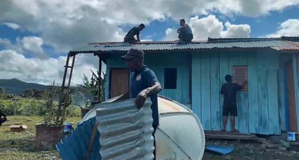 SuaraINetizen.Com – Kalomdol, Pegunungan Bintang, Papua, Wujud nyata kehadiran TNI sebagai pelayan rakyat kembali ditunjukkan oleh prajurit Satgas Pamtas RI–PNG Yonif 751/Vira Jaya Sakti (VJS) dari Pos Kalomdol melalui aksi renovasi rumah warga di wilayah perbatasan.
