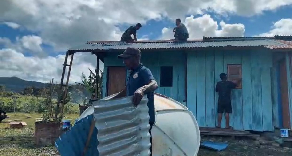 Ket :TNI Renovasi Rumah Warga Kalomdol Papua