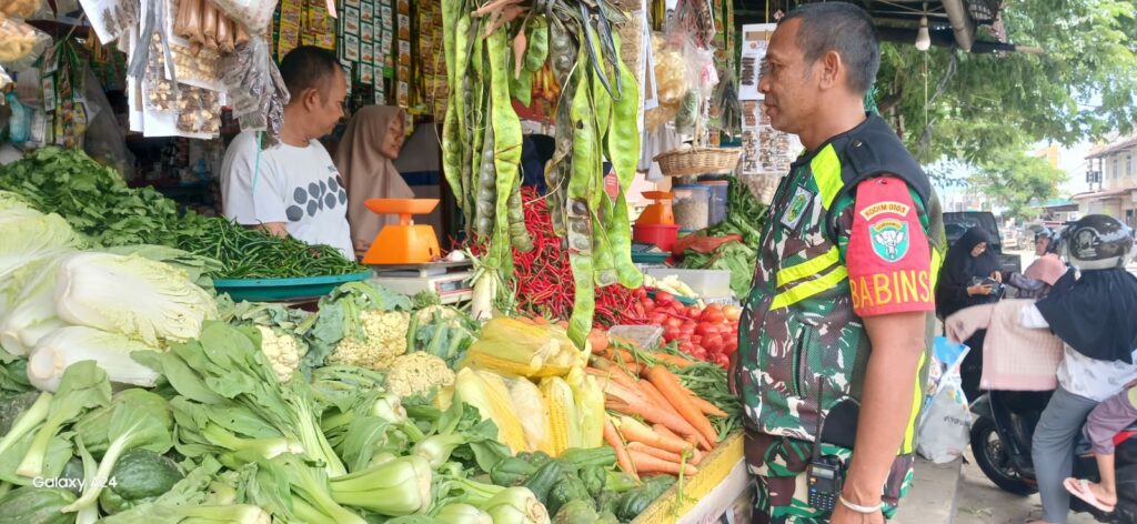 SuaraINetizen.Com – Aceh Utara, Babinsa Koramil 16/Banda Sakti, Serka Fadli, melaksanakan kegiatan pengecekan harga sembako di Pasar Inpres, Kecamatan Banda Sakti, Kota Lhokseumawe, Kamis (18/9/2025). Kegiatan ini dilakukan untuk memastikan perkembangan harga kebutuhan pokok sekaligus mengecek ketersediaannya di pasaran.