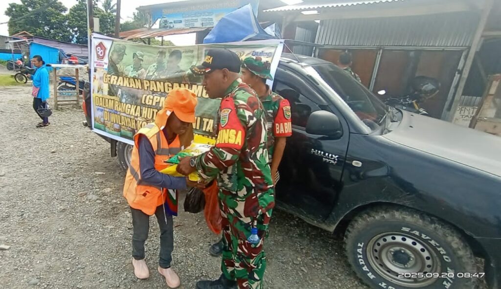 Suarainetizen.com, Timika – Untuk menjaga kestabilan harga beras di pasaran, Kodim 1710/Mimika melalui Koramil jajaran bekerja sama dengan Perum Bulog terus menggelar Gerakan Pangan Murah (GPM) bagi warga Timika. Kegiatan tersebut berlangsung di tiga titik, yakni area Car Free Day Jl. Cenderawasih, depan Koramil 1710-02/Timika, serta Bundaran SP 2 Distrik Mimika Baru, Kabupaten Mimika, Sabtu (20/9/2025).