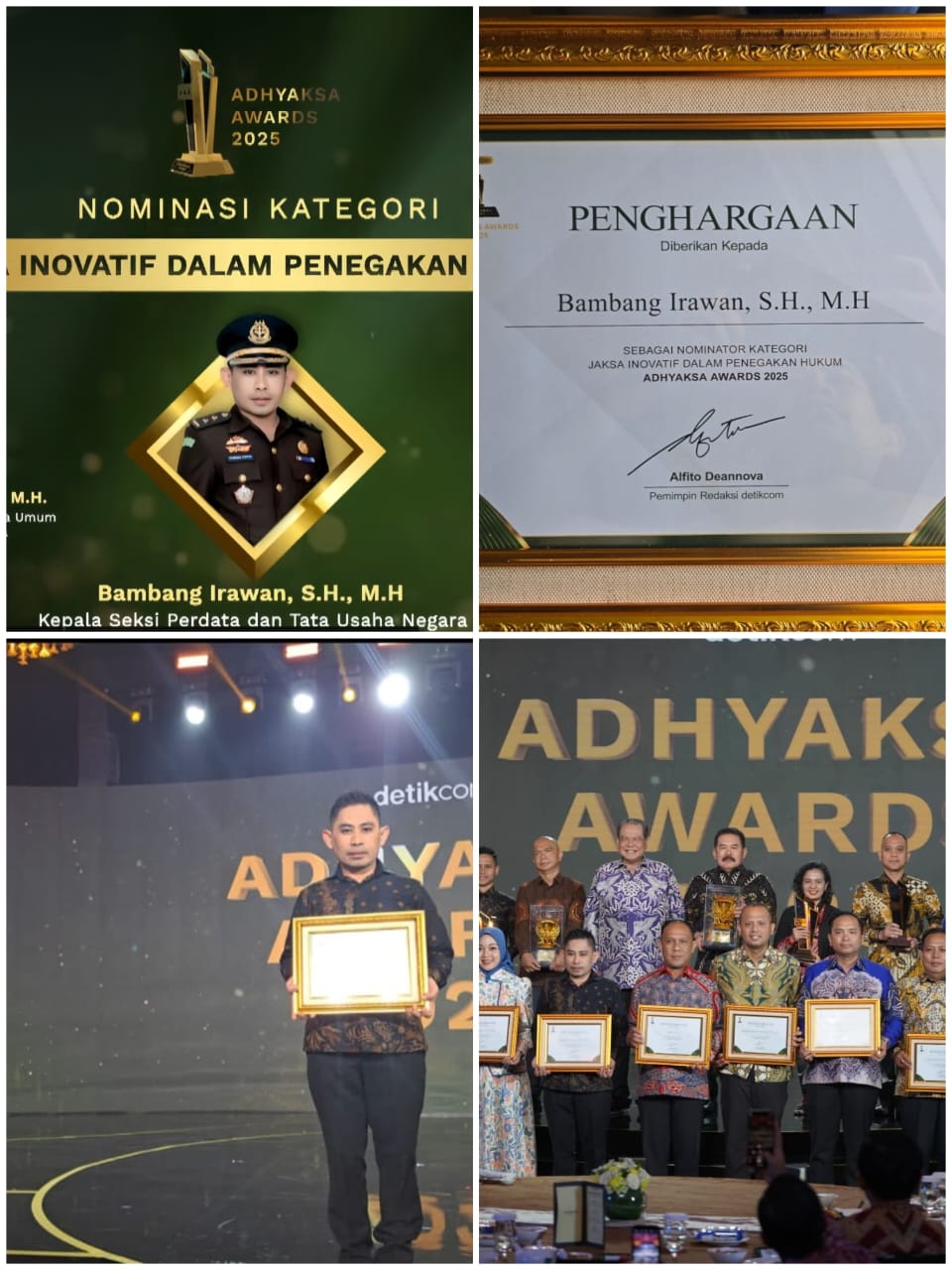 Jaksa Bambang Irawan, S.H, M.H yang menjabat sebagai Kepala Seksi (Kasi) Bidang Perdata dan Tata Usaha Negara (Datun) Kejari Bandar Lampung, sebelumnya terpilih sebagai nominator 3 (tiga) besar finalis adhyaksa awards 2025 dalam kategori, “jaksa inovatif dalam penegakan hukum”.