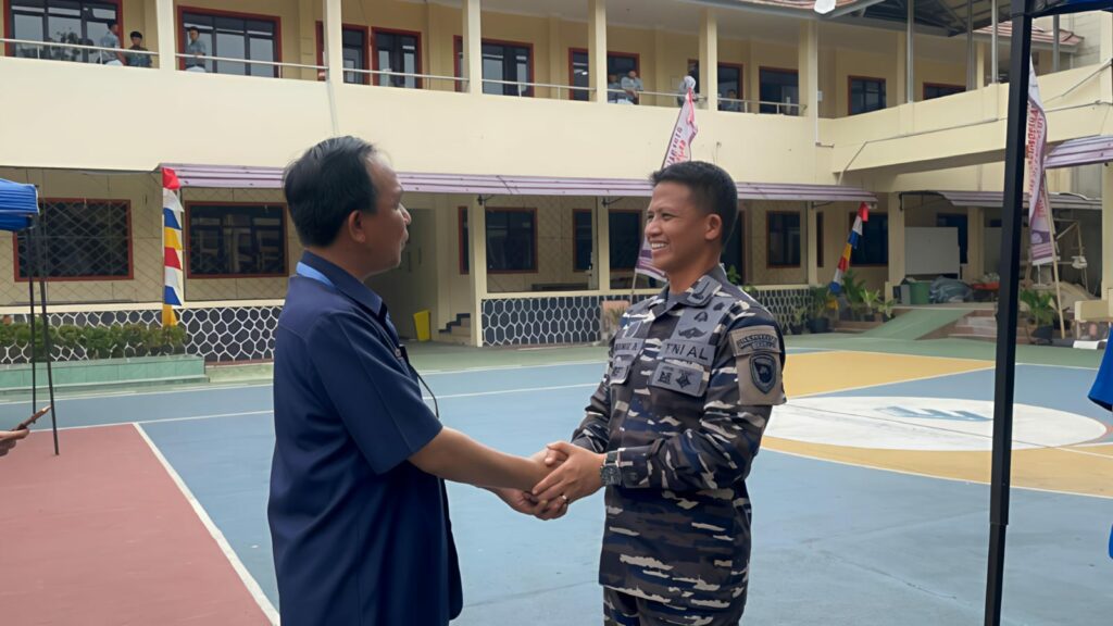 SuaraINetizen –TNI AL, Pen Kormar, Pasmar 1, Prajurit Hiu Perkasa Yonmarhanlan III Jakarta kembali menunjukkan kepedulian terhadap generasi muda dengan melaksanakan Program Makan Bergizi Gratis (MBG) di SMK Hang Tuah 1 Jakarta, Komplek Kodamar, Kelapa Gading, Jakarta Utara. Kegiatan ini dihadiri ratusan siswa dan guru yang antusias menyambut kehadiran para prajurit Korps Marinir TNI AL, Kamis, 25 September 2025.