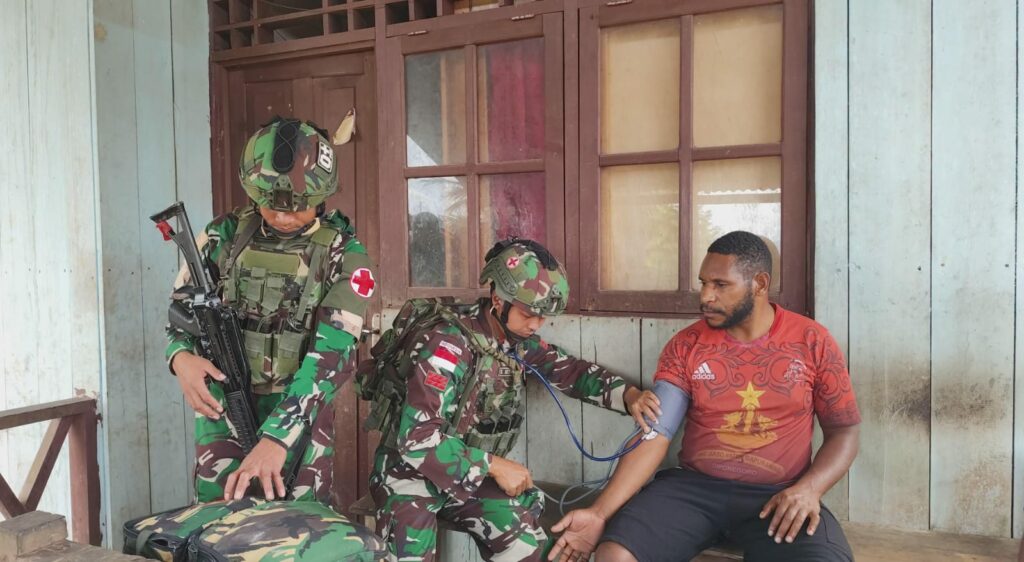 SuaraINetizen.Com – Pegunungan Bintang, Papua, Dalam rangka memperingati Hari Ulang Tahun Tentara Nasional Indonesia (HUT TNI) ke-80, prajurit Pos Tarub Satgas Pamtas RI–PNG Yonif 751/Vira Jaya Sakti (VJS) melaksanakan kegiatan anjangsana dan pengobatan door to door pada (Sabtu,27/9/2025).