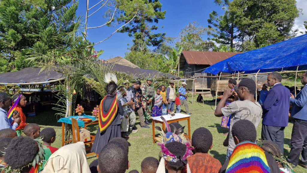 SuaraINetizen.Com – Membramo Tengah, Satgas Pamtas RI-PNG Kewilayahan Yonif 521/DY Pos Eragayam menghadiri undangan tradisi acara bakar batu oleh masyarakat Distrik Eragayam Kabupaten Membramo Tengah Papua Pegunungan. (27/9/2025).