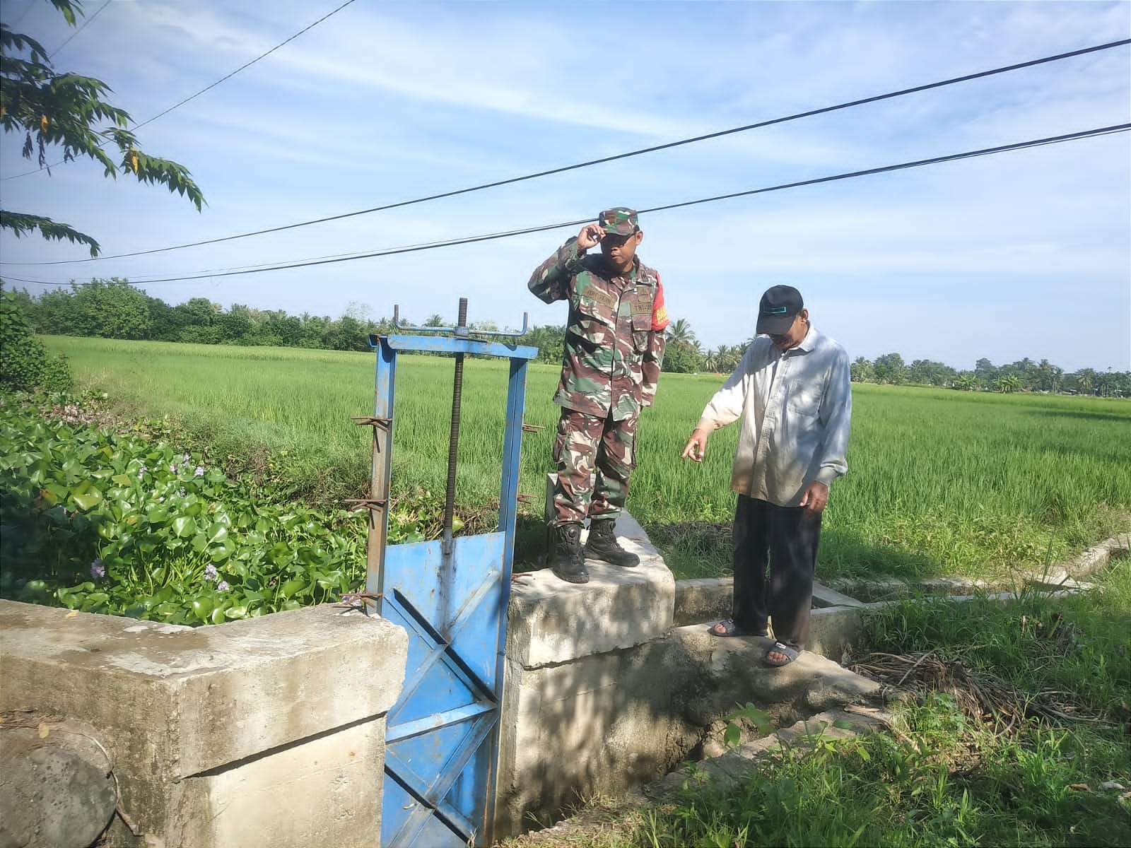 SuaraINetizen.Com – Aceh Utara, Babinsa Koramil 15/Matangkuli, Pelda Fandi S, melaksanakan kegiatan pendampingan ketahanan pangan dengan melakukan pengecekan saluran irigasi di area persawahan Desa Tutong, Kecamatan Matangkuli, Kabupaten Aceh Utara, Selasa (30/9/2025). Langkah ini dilakukan untuk memastikan pasokan air bagi tanaman padi tetap lancar.
