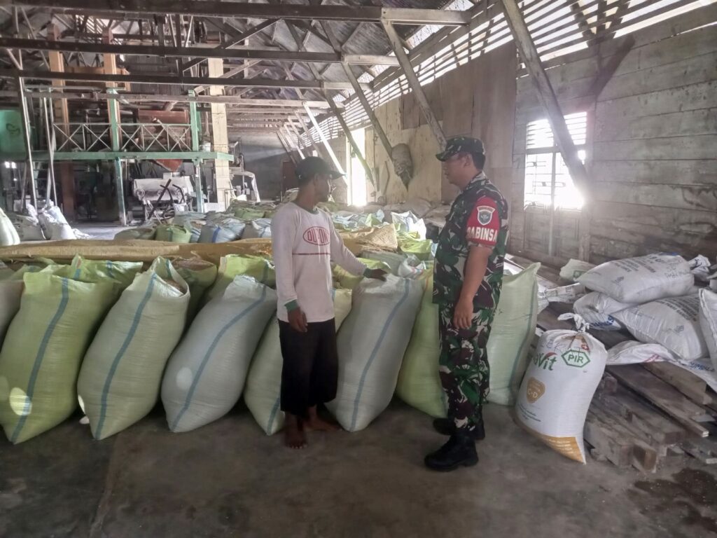 Dalam kegiatan ini, Babinsa memeriksa jumlah gabah dan beras yang tersimpan serta mengecek kualitasnya agar tetap layak konsumsi. Pendampingan seperti ini membantu pemilik kilang dan petani menjaga mutu produk mereka.