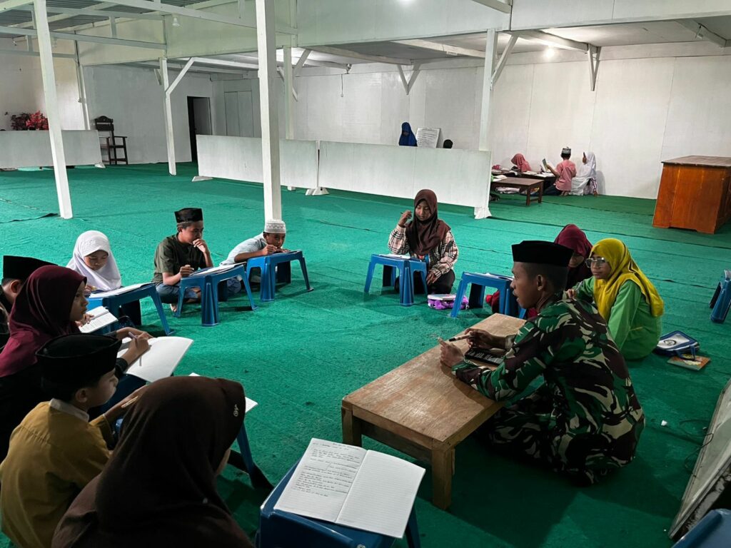 Ket :Satgas Yonif 751/Vira Jaya Sakti (VJS) melaksanakan kegiatan mengajar mengaji bagi anak-anak di Masjid An-Nur