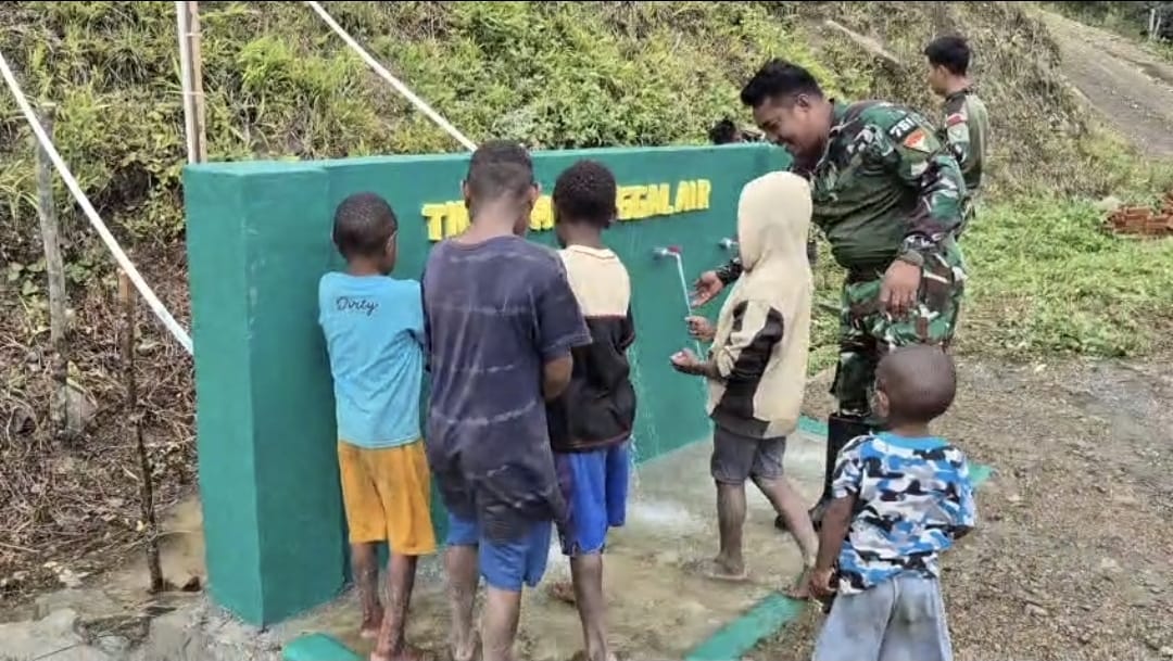 SuaraINetizen.Com, Distrik Okaom, Pegunungan Bintang Di bawah naungan Koops Swasembada, Satgas Pamtas Statis Yonif 751/Vira Jaya Sakti (VJS) melaksanakan program TNI Manunggal Air di Kampung Bulangkop Distrik Okaom. Inisiatif ini ditujukan untuk mencegah kekeringan saat musim kemarau sekaligus memastikan pasokan air bersih yang andal bagi masyarakat di sekitar pos perbatasan (Selasa, 25/11/2025).
