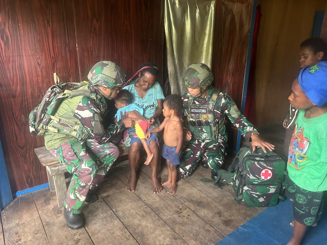 Dengan perlengkapan medis sederhana, prajurit TNI mendatangi satu persatu rumah warga yang terdampak, Pemeriksaan fokus diberikan kepada anak-anak yang mengalami ruam, iritasi, dan luka akibat garukan. Para prajurit memberikan salep antibakteri, obat antihistamin, pembersih kulit antiseptik, serta mengajarkan cara perawatan luka agar tidak semakin parah.