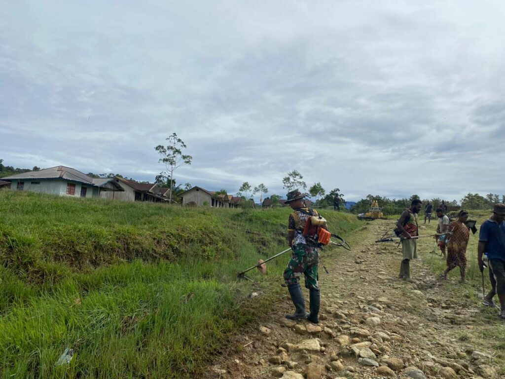SuaraINetizen.Com – Distrik Tarup, Pegunungan Bintang, Pos Tarup Satgas Pamtas RI–PNG Yonif 751/Vira Jaya Sakti (VJS) melaksanakan kerja bakti bersama masyarakat Tarup yang dipimpin Danpos Letda Inf Elpidius. Kegiatan gotong royong difokuskan pada pembersihan akses jalan, penyiangan rumput liar, pengumpulan sampah, serta penataan saluran air untuk menjaga lingkungan tetap rapi, sehat, dan aman digunakan warga.(Selasa,9/12/2025).