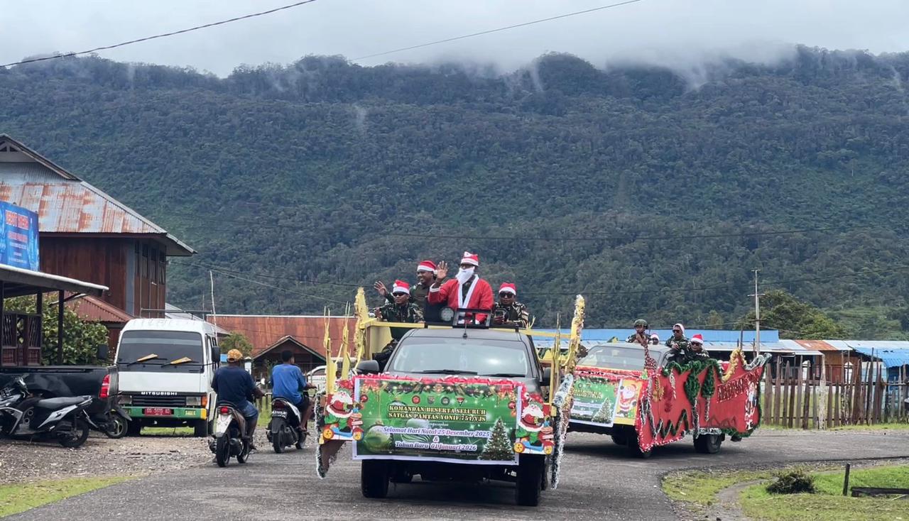 Kegiatan ini dikemas dengan cara unik dan meriah. Satgas menggunakan kendaraan yang dihias menyerupai kereta Santa Claus, lengkap dengan ornamen Natal, sementara para prajurit mengenakan topi khas Natal saat menyapa warga. Suasana kampung pun menjadi lebih hidup; anak-anak terlihat antusias, warga tersenyum, dan banyak yang ikut berfoto bersama karena merasa terhibur dengan kehadiran “kereta Santa” Satgas 751/VJS.