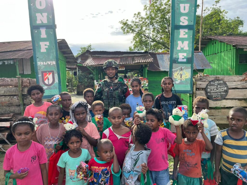Satgas Yonif 751/VJS Bagikan Bingkisan Natal untuk Warga: Sembako, Snack, hingga Boneka untuk Anak-Anak