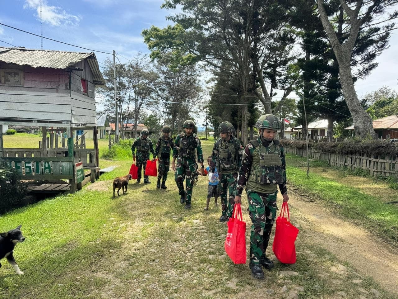 Konsistensi dalam membantu kesulitan masyarakat di wilayah penugasan terus ditunjukkan oleh Satgas Yonif 521/DY Pos Bolakme melaksanakan aksi kemanusiaan dengan mendatangi langsung rumah-rumah warga (door-to-door) untuk membagikan paket sembako sekaligus memberikan pelayanan pengobatan gratis.