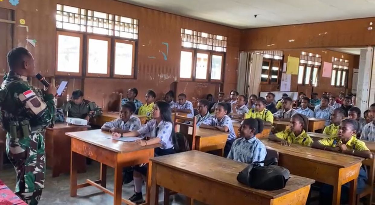 SuaraINetizen.Com – Pegunungan Bintang, Papua Pegunungan, Satgas Pamtas RI–PNG Yonif 751/Vira Jaya Sakti (VJS) melaksanakan kegiatan sosialisasi kepada siswa-siswi tingkat SMP di wilayah Pegunungan Bintang. Sosialisasi ini memuat materi Bela Negara sebagai upaya menanamkan jiwa nasionalisme, kedisiplinan, serta semangat persatuan kepada para remaja di daerah perbatasan. (Kamis,29/1/2026).