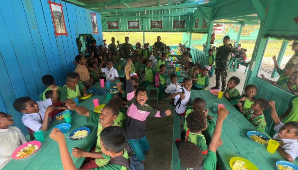 SuaraINetizen.ComOksibil, Pegunungan Bintang, Pos Komando Taktis (Kotis) Satgas Pamtas RI–PNG Yonif 751/Vira Jaya Sakti (VJS) mengundang anak-anak SD sepulang sekolah untuk mengikuti kegiatan makan bersama di Rumah Makan Swasembada. Kegiatan ini menjadi bagian dari pembinaan teritorial yang edukatif dan humanis, dengan menggabungkan pembelajaran sederhana, permainan, serta kebersamaan. (Sabtu,7/2/2026).
