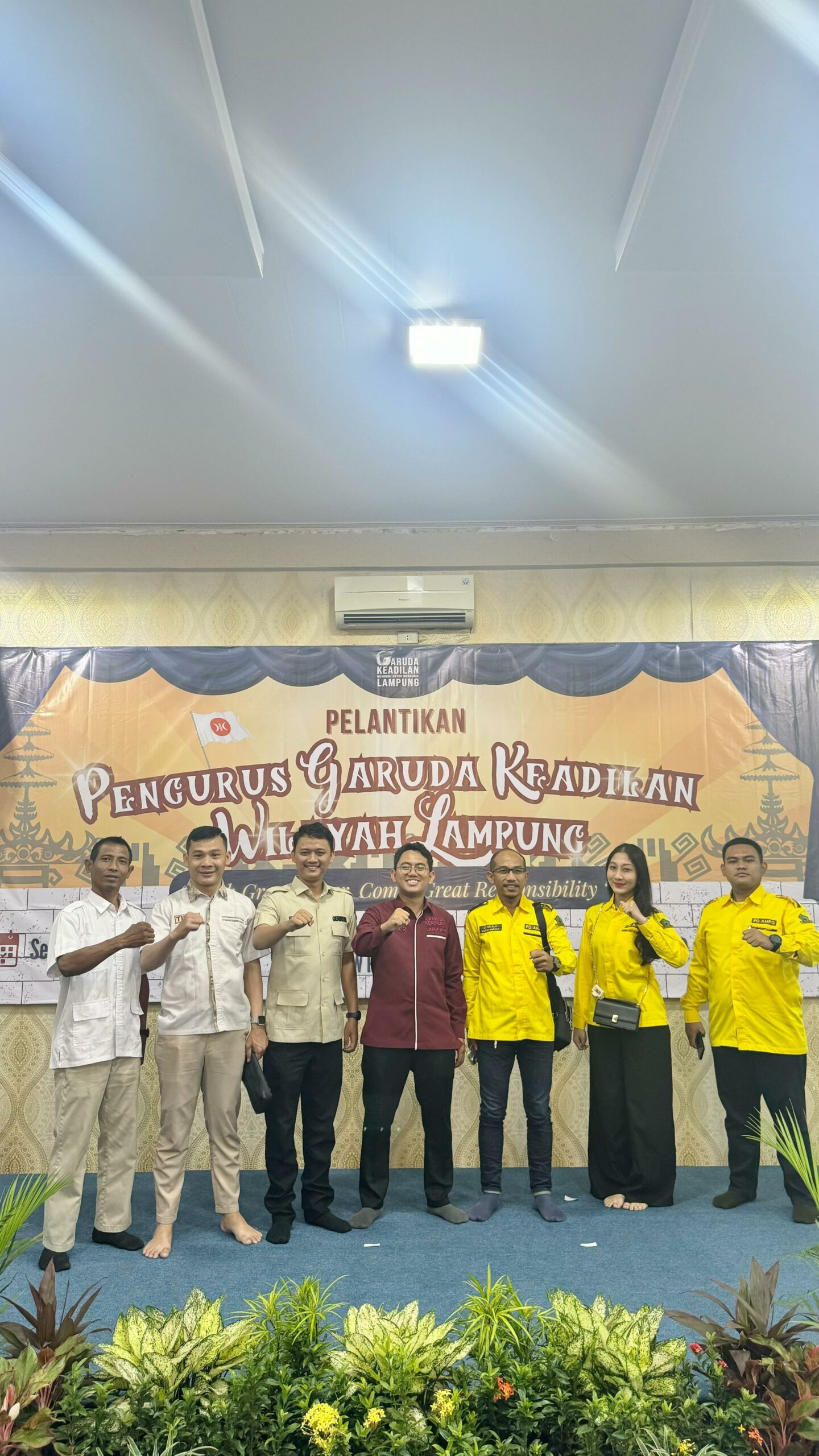 Kota Bandar Lampung, Ketua Pimpinan Daerah (PD) Angkatan Muda Partai Golkar (AMPG) Provinsi Lampung, Dr. (Can) Darlian Pone, S.H, S.E, M.M diwakili oleh Ketua Harian, Seno Aji, S.Sos, S.H, M.H menghadiri rangkaian acara pelantikan pengurus Garuda Keadilan (GK) Wilayah Lampung yang berlangsung di gedung serba guna (GSG) Ragom Sejahtera lantai 2, kantor Dewan Pimpinan Tingkat Wilayah (DPTW) Partai Keadilan Sejahtera (PKS) Provinsi Lampung pada Senin (16/2/2026) pagi.