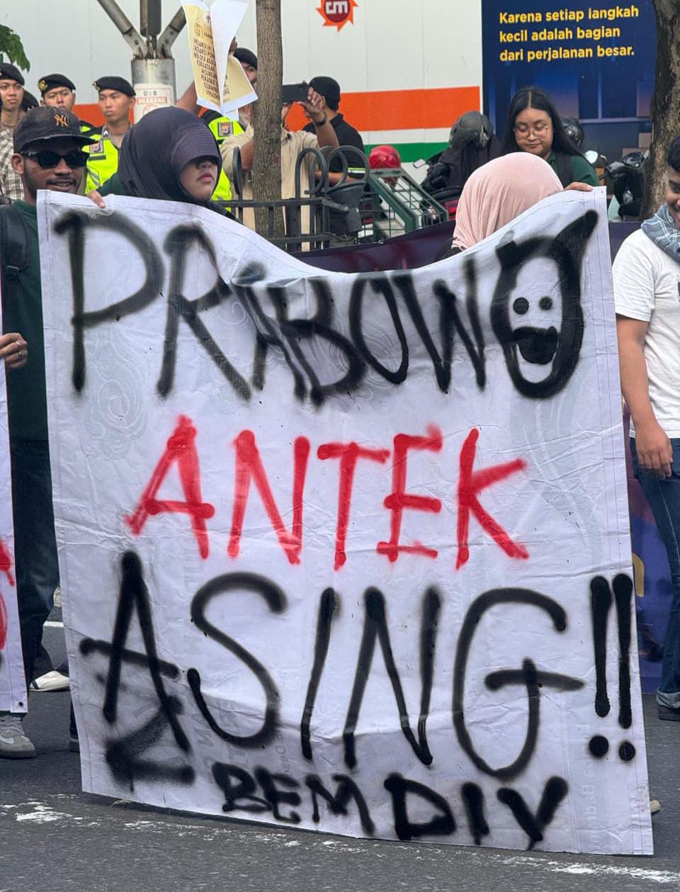 Dalam aksi tersebut, massa menyoroti program Makan Bergizi Gratis (MBG) serta mengkritisi sikap pemerintah yang dinilai pro terhadap kepentingan asing.