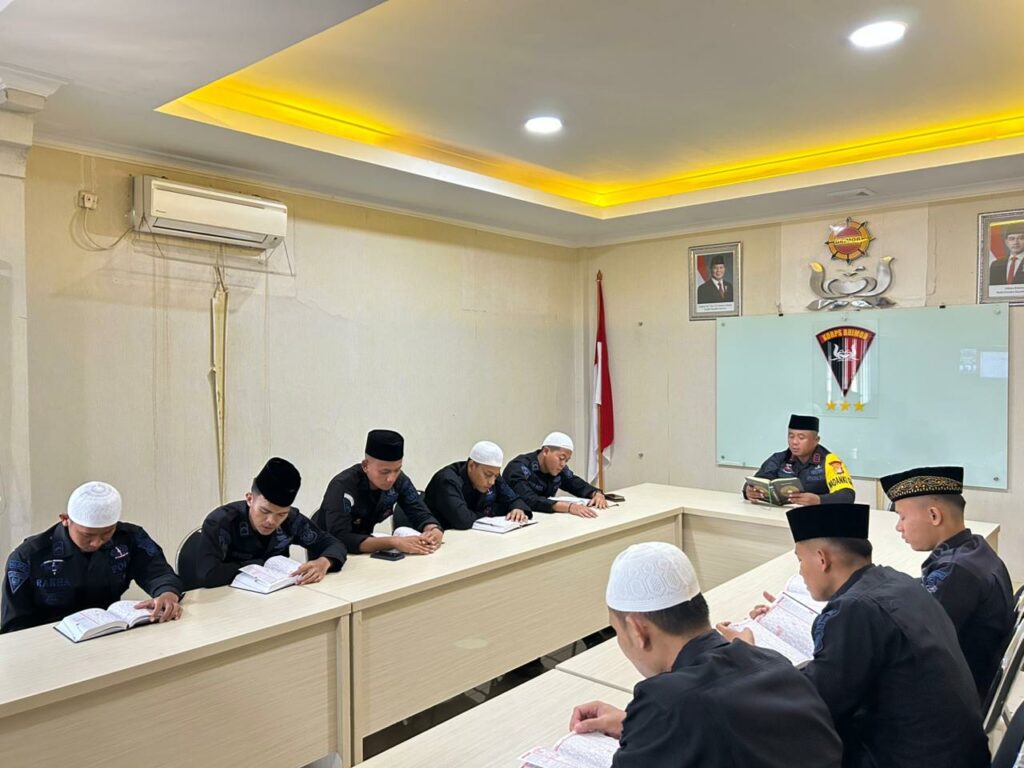 Tangerang – Personel Batalyon C Pelopor Korps Brigade Mobil Polda Metro Jaya menghidupkan Ramadan melalui tadarus Al-Qur’an bersama.
