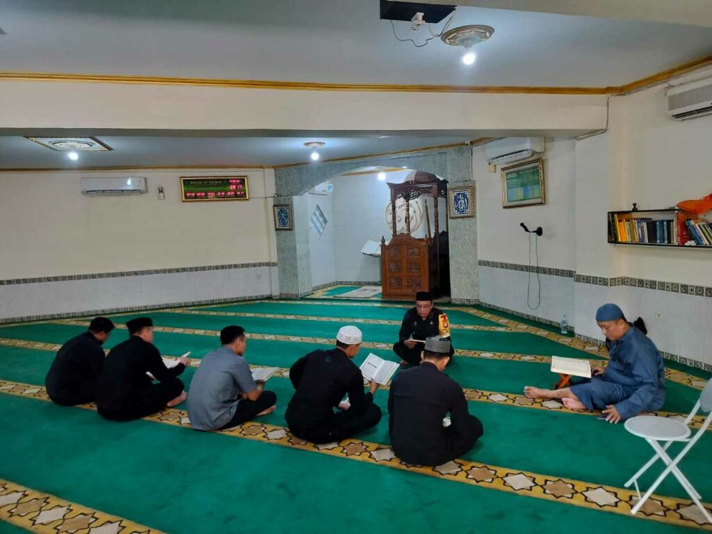 Setelah apel pagi, para personel segera berkumpul di masjid untuk mengikuti tadarus sebagai bagian pembinaan rohani selama Ramadan.
