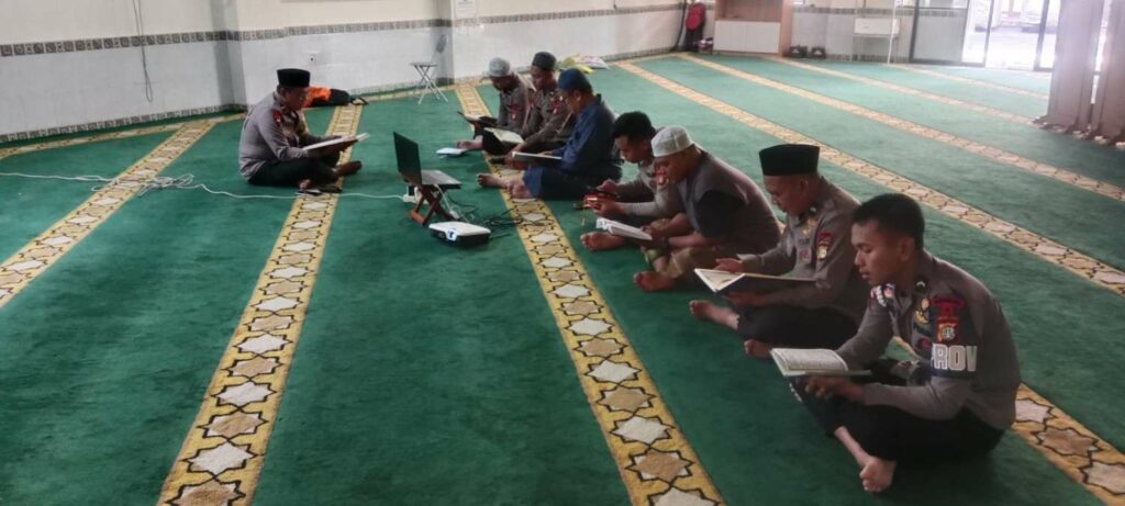 Sejak pukul 08.30 WIB, personel yang tidak menjalankan tugas langsung mengikuti tadarus dengan suasana khidmat dan penuh kekhusyukan.