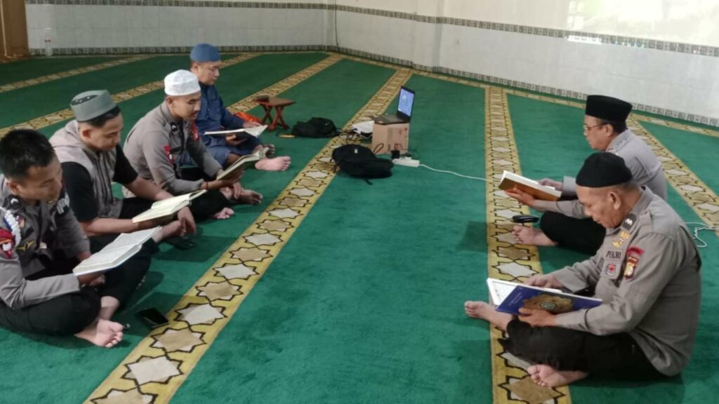Ipda Nurali memimpin jalannya tadarus dan mengarahkan personel membaca Al-Qur’an secara bergiliran.