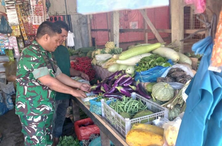 SuaraINetizen.Com - Aceh Utara, Babinsa Koramil 02/Kuta Makmur Sertu Marizal melaksanakan kegiatan pengecekan harga sembilan bahan pokok (sembako) di Pasar...