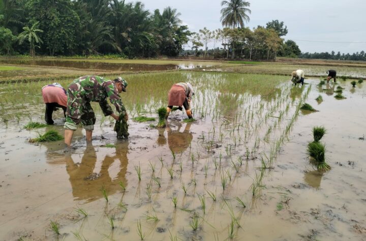 SuaraINetizen.Com - Aceh Utara, Babinsa Koramil 05/Stb Sertu Budi melaksanakan kegiatan Hanpangan dengan membantu masyarakat menanam padi di Desa Bungong...