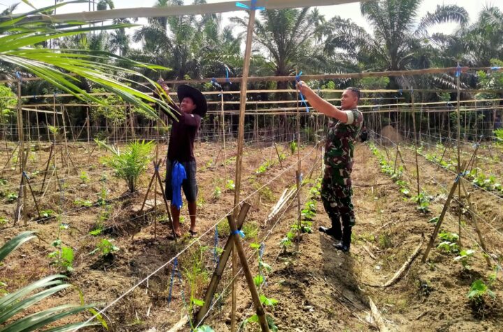 SuaraiNetizen.Com -Aceh Utara, Babinsa Koramil 28/PRT Serda Munawir melaksanakan kegiatan Hanpangan (Ketahanan Pangan) dengan membantu warga memasang lanjaran tanaman gambas...