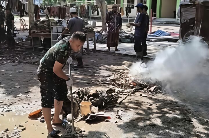 Karya Bakti HUT TNI ke-80, Koramil 20/Cot Girek dan Warga Brd Asan Kompak Bersihkan Masjid Al-Ikhlas