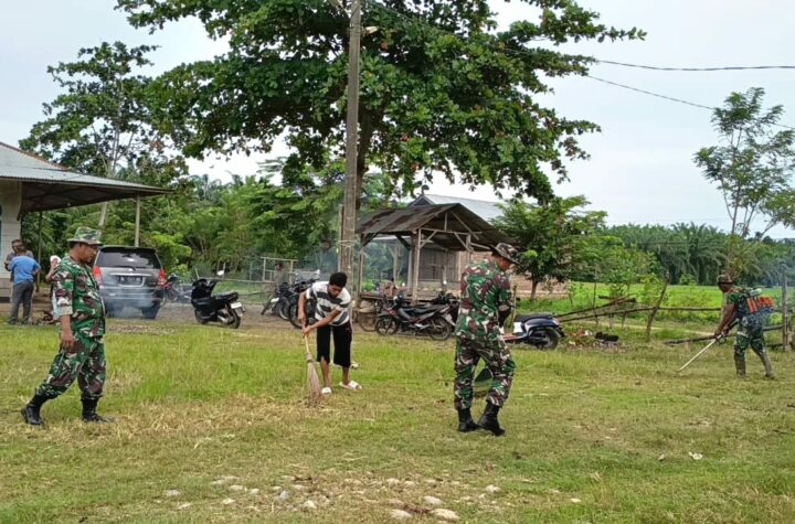 Karya Bakti HUT TNI ke-80, Koramil 20/Cot Girek dan Warga Brd Asan Kompak Bersihkan Masjid Al-Ikhlas