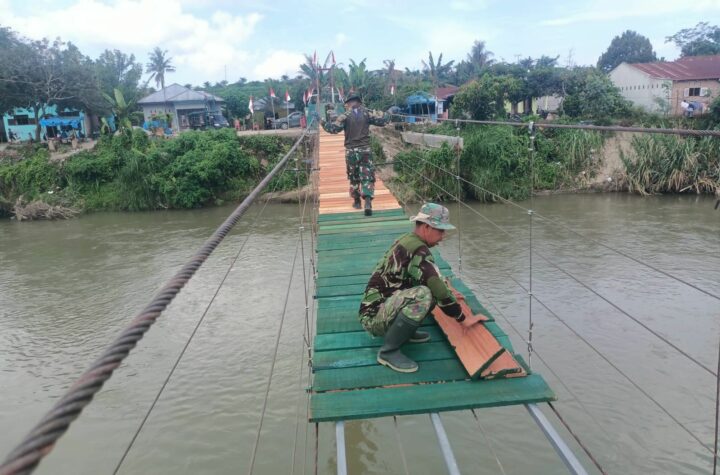 SuaraINetizen.Com - Deli Serdang, Satuan Tugas Penanggulangan Bencana Alam (Satgas Gulbencal) Kodam I/Bukit Barisan melanjutkan pekerjaan renovasi Jembatan Gantung Garuda...