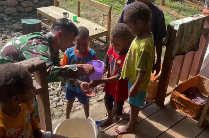 SuaraINetizen.Com - Kampung Beringin, Pegunungan Bintang, Pos Selal Satgas Pamtas RI–PNG Yonif 751/Vira Jaya Sakti (VJS) melaksanakan edukasi kebersihan lingkungan...